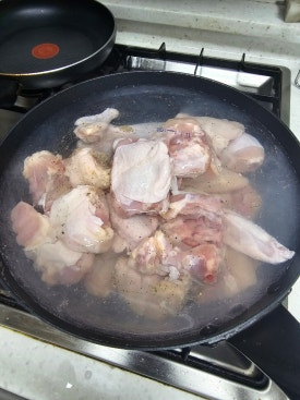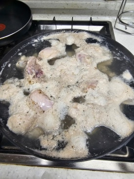 닭도 씻어냅니다. 저 거품이 다 잡내입니다. 주로 피에서 나오죠