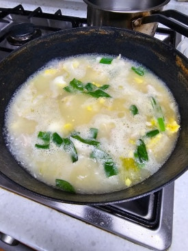 이제 끓이기만 하면 되는 데 여기 MSG 살짝 써주면 아주 깊은 맛이 납니다.