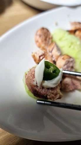 소스는 마요네즈에 청량고추를 넣어서 만들었구요..