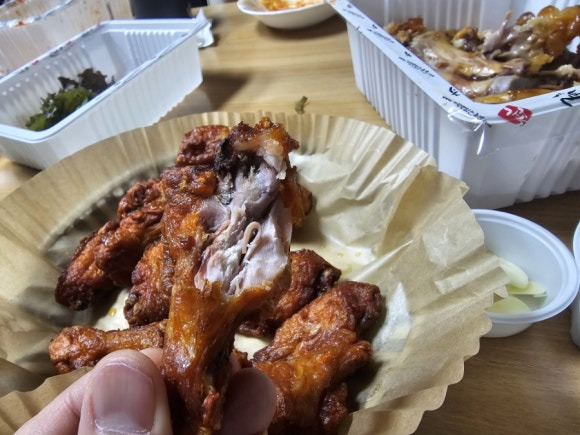사놓은 치킨 데워먹었습니다.