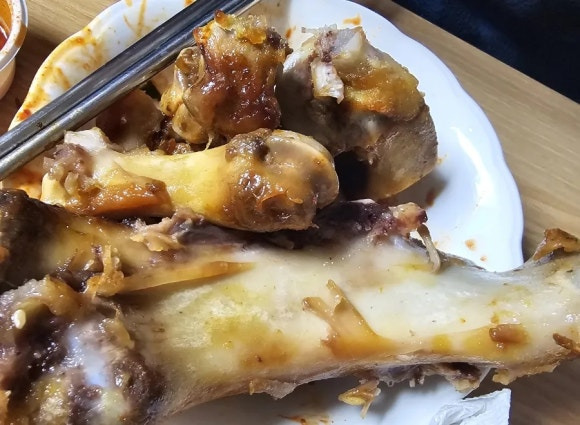 돼지껍데기를 시킨건지 뼈를 시킨건지