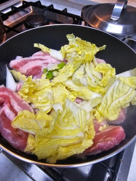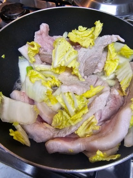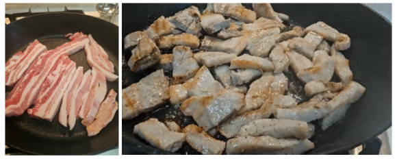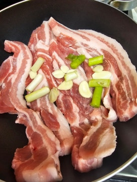 일단 삼겹이니 기름안두르고 대파랑 마늘넣고 구워가면서