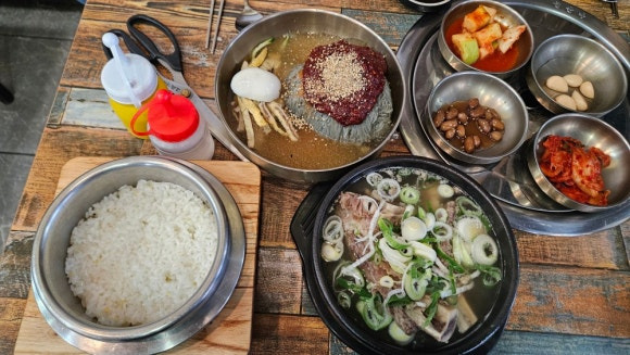 물,비냉면과 산더미왕갈비탕을 시켰습니다.