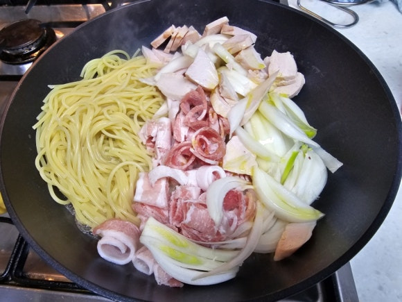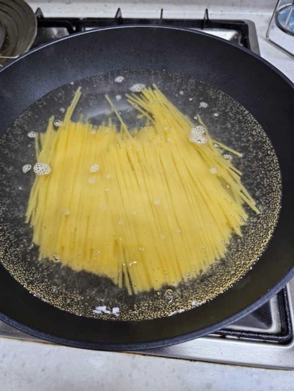 파스타 면은 이탈리아인이 극대노하는 방법으로 그냥 반으로 잘라 냄비에 넣었습니다.