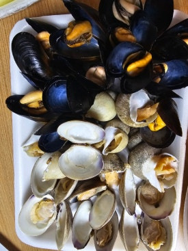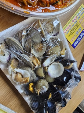 홍합이랑 소라 조개류는 따로 담아주십니다. 부피떄문에 그러신듯
