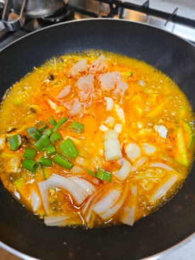 좀더 진한 풍미를 느끼실라면 고기랑 양파 기름살짝두르고 볶아서 소스랑 물 넣으세요