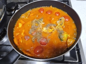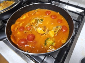그리고 방울토마토도 넣었습니다. 이미 토마토 소스가 있지만