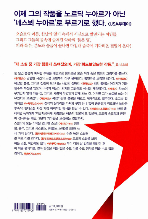 해리 홀레가 처음 등장하는 시리즈의 시작. 호주에서 벌어진 살인 사건을 다루며 캐릭터의 출발점을 보여줍니다.