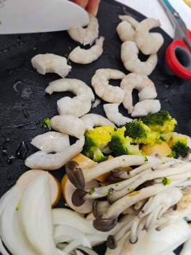 저는 오늘 새우랑 버섯 위주로 사용했습니다.