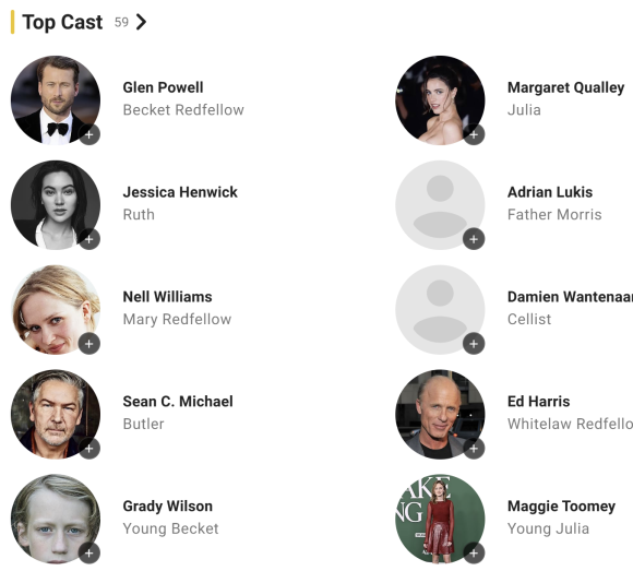 출연진: 글렌 파월, 마가렛 퀄리, 제시카 헨윅